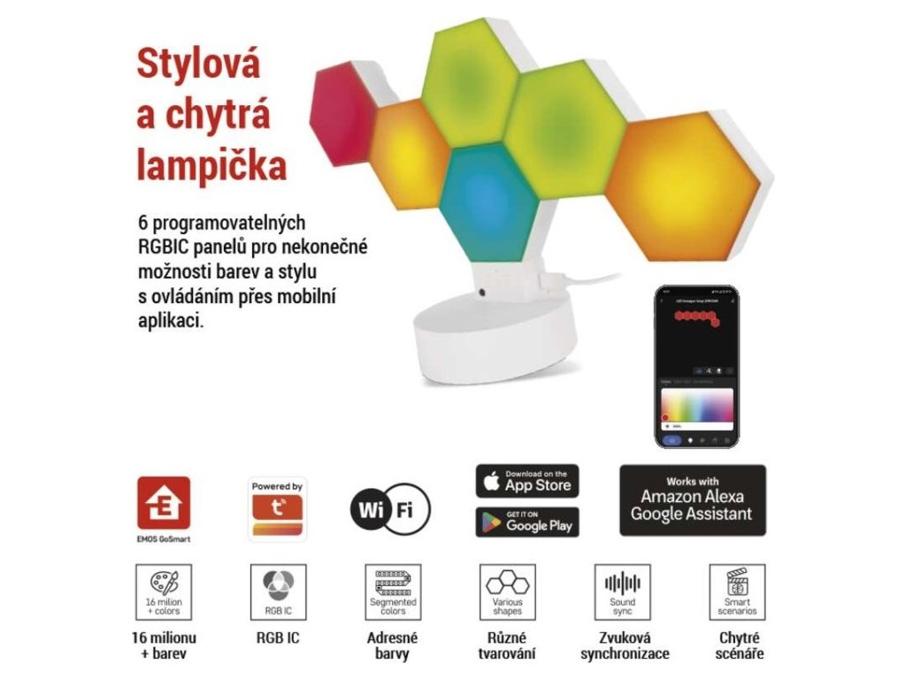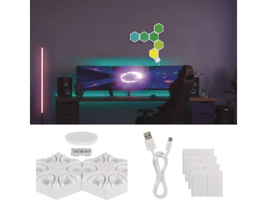 GoSmart LED stolní lampa Hexagon bílá, 6 dílů, RGBIC stmívatelná, WiFi