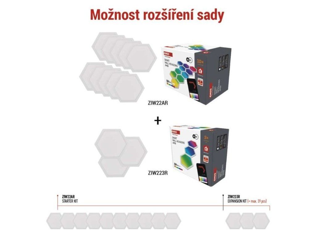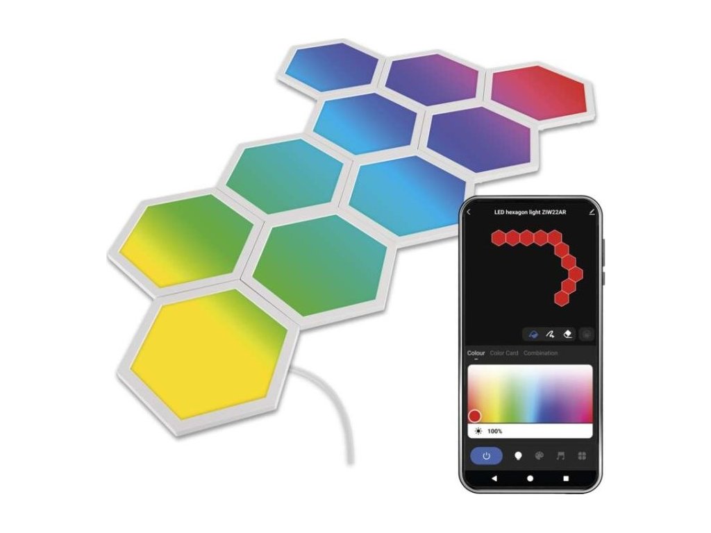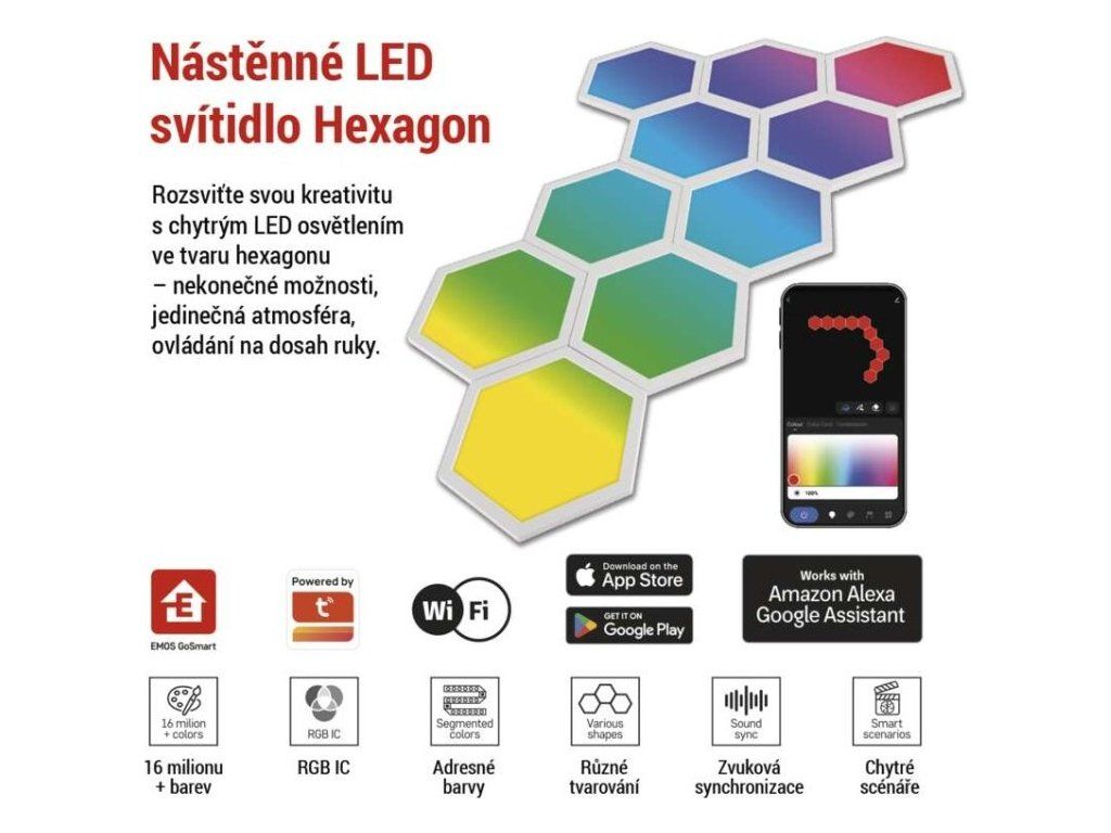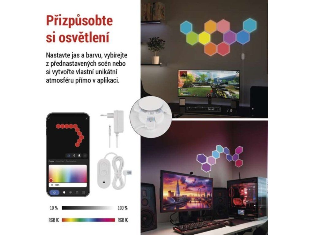 GoSmart LED svítidlo Hexagon, startovací sada, 10 dílů, 19 W, RGBIC stmívatelné, WiFi
