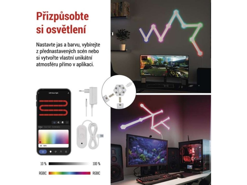 GoSmart LED svítidlo Lines bílé, 9 dílů, 34 W, RGBIC stmívatelné, WiFi