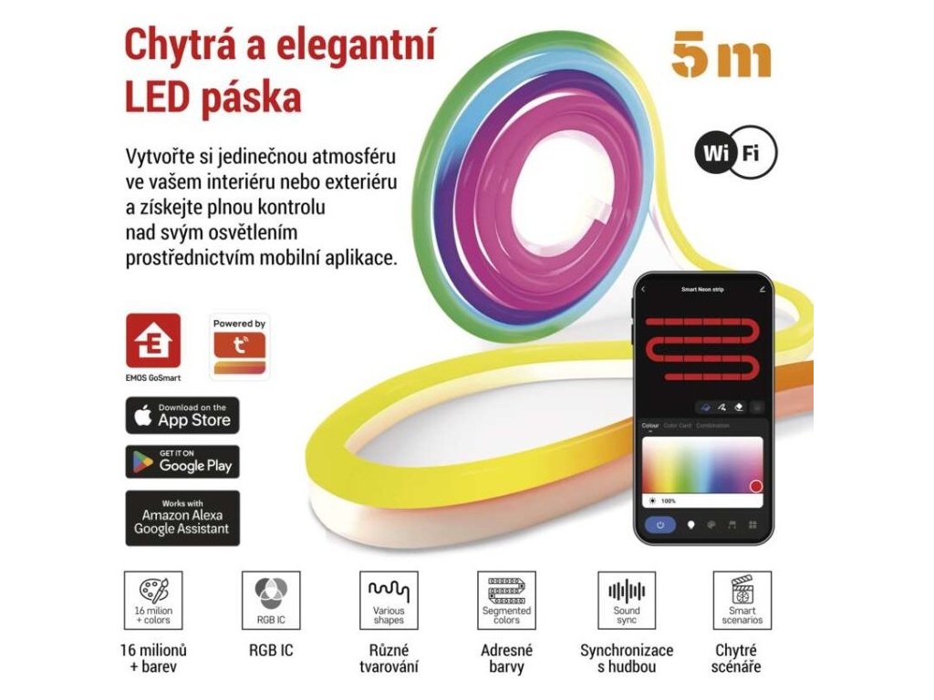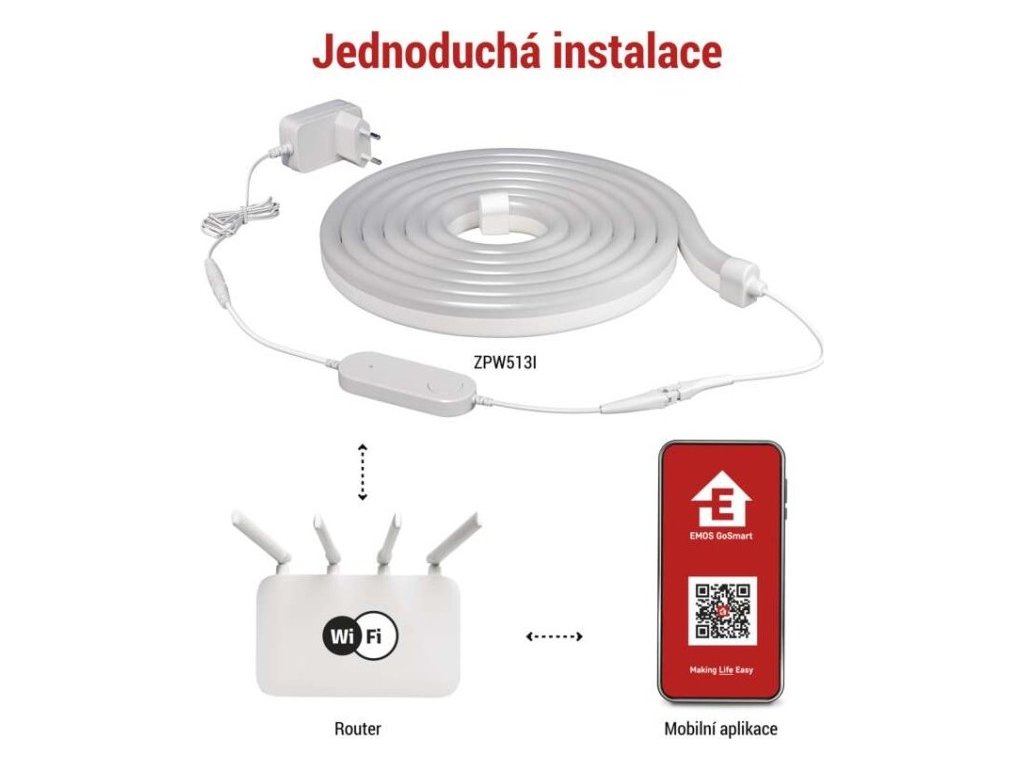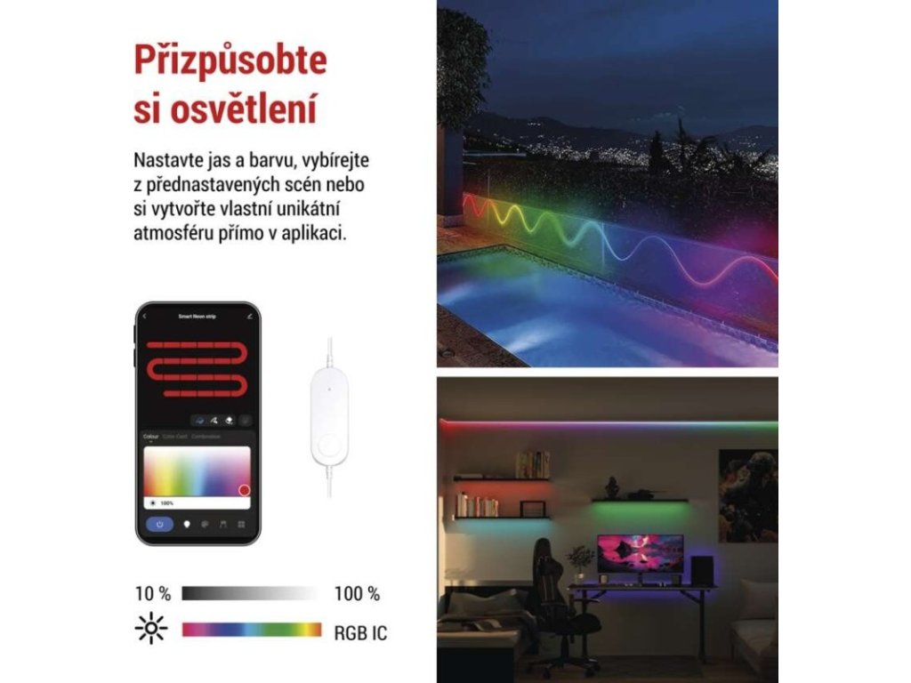 GoSmart ohebný LED pásek NEON bílý, 5 m, 33 W, RGBIC stmívatelný, WiFi