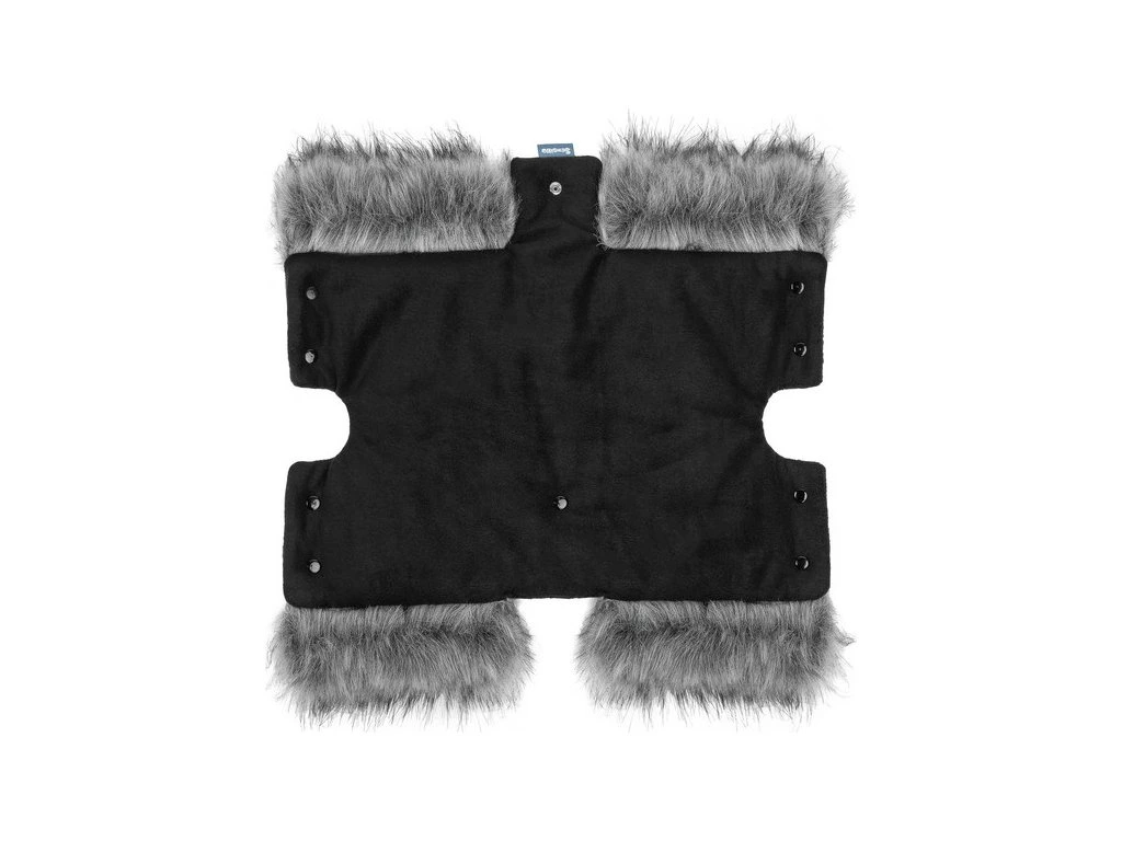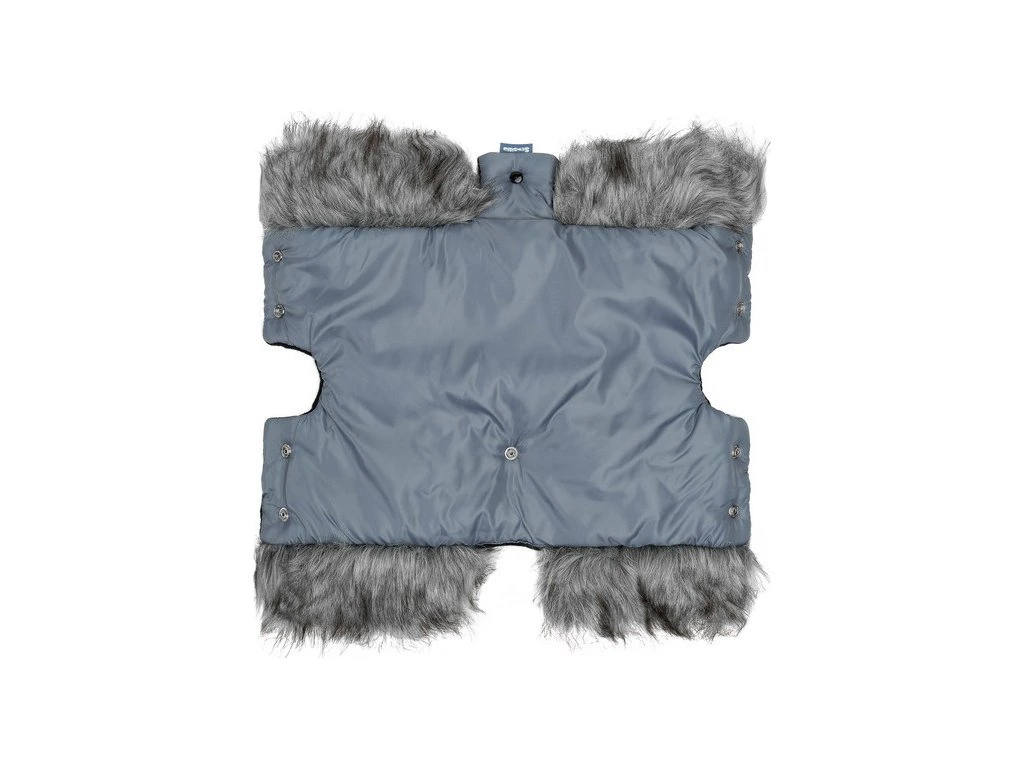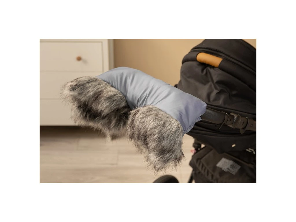 Univerzální návlek na kočárek s liškou chrání ruce před nepřízní počasí. Díky zapínání na druky neklouže z rukojeti kočárku ani sáněk. Z vnější strany je lemována voděodolným materiálem, uvnitř je vyplněna měkkým fleecem. Má vrstvu polyesterové výplně, která izoluje před chladem. Celé kouzlo dodává lem z umělé kožešiny.