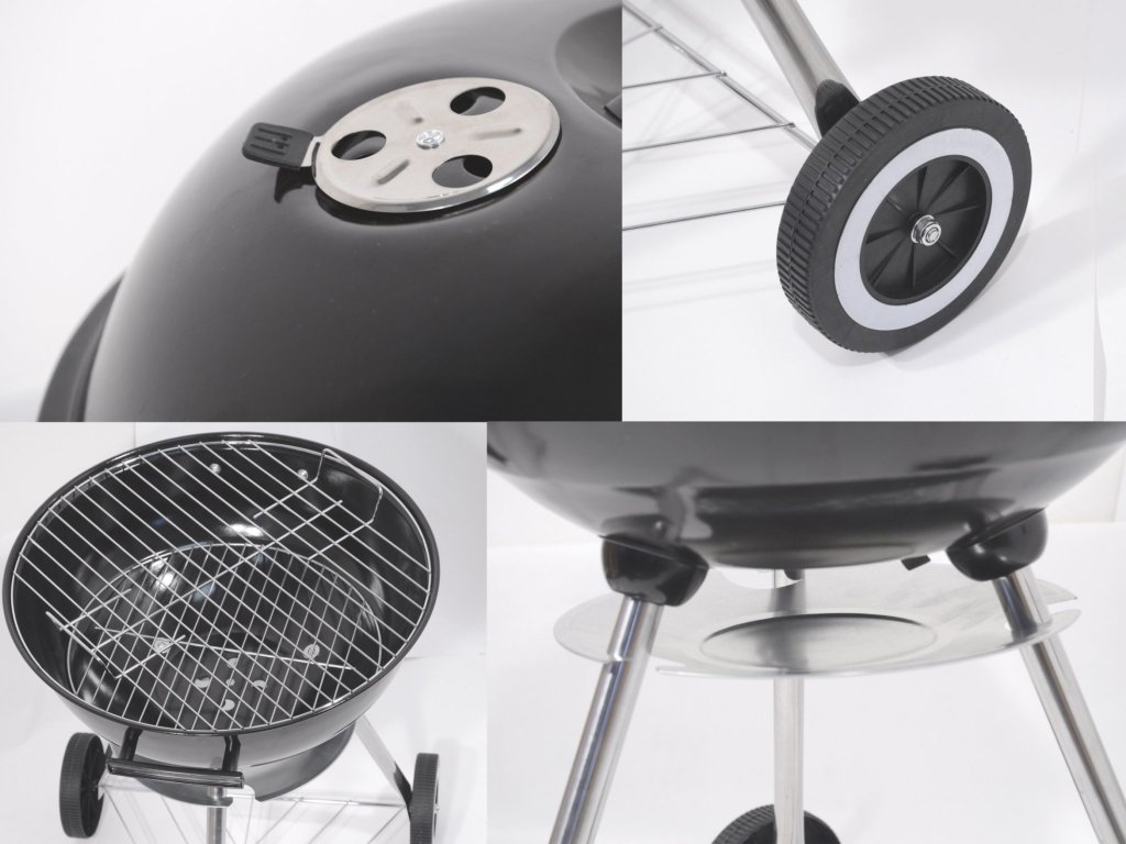 Konstrukce je vyrobena z kvalitního ocelového plechu se smaltovanou povrchovou úpravou. Madla jsou z odolného plastu a mají dostatečný prostor pro úchop. Mobilitu zajištují tři kovové nohy, doplněné o zpevňující rám ve spodní časti. Navíc je gril vybaven kolečky z plastu, která zaručují dostatečnou pohyblivost.