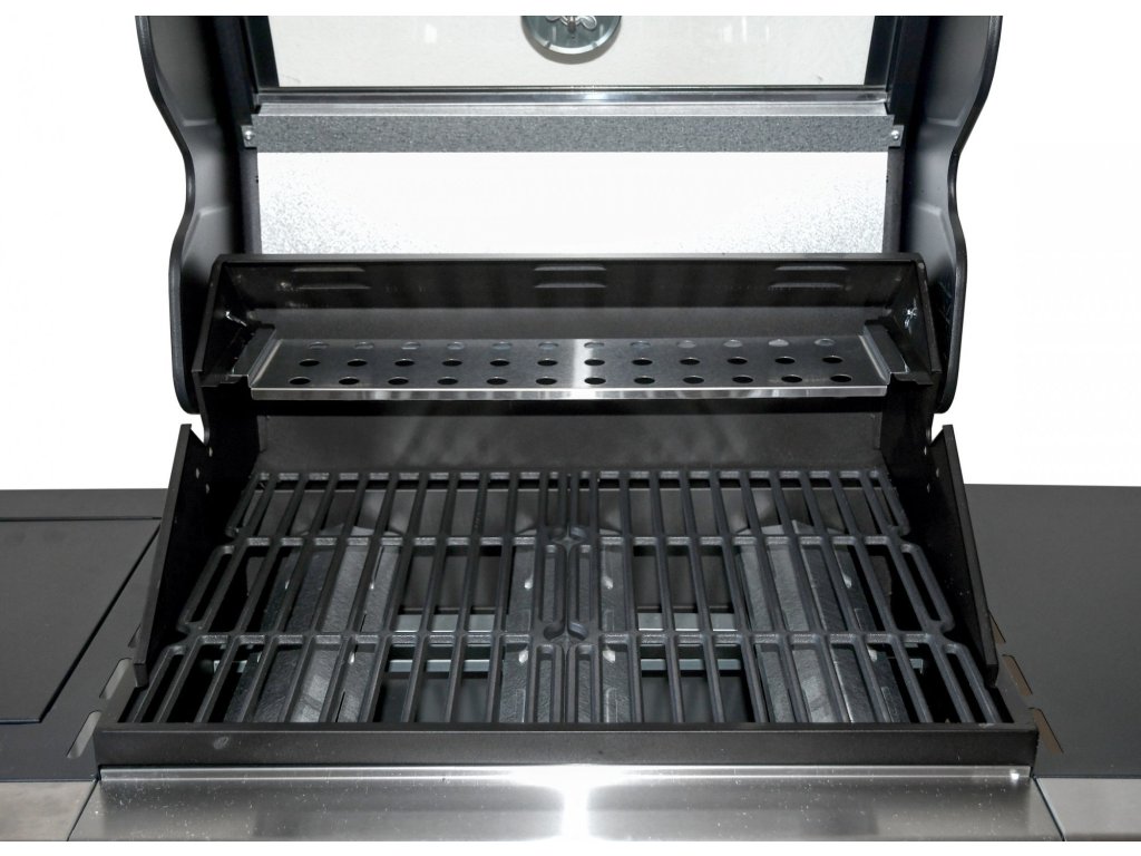 Konstrukce grilovacího prostoru je navržena tak, aby umožňovala snadné osazení grilovací jehlou s motorkem (např. Cattara 13053). Použití grilovací jehly zajistí pohodlnou připravu větších kusů mas, nebo kuřete s rovnoměrným otáčením.