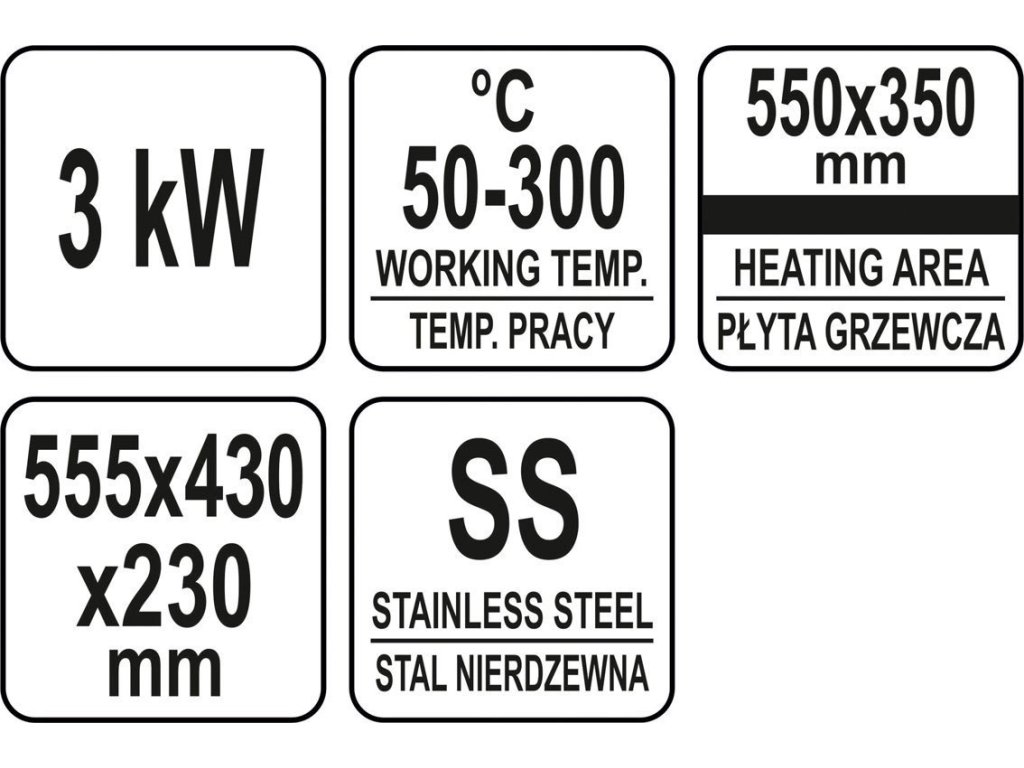 | Rozměry grilovací plochy | 555 x 350 mm |