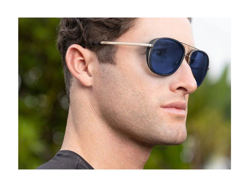 Kancelářské brýle s tmavými skly a jedinečným designem, určené zejména pro venkovní nošení či práci na počítači ve velmi světlém prostředí. Blokují 90 % modrého světla a 100 % ultrafialového záření, díky čemu minimalizují zatížení očí a celkovou únavu. Tyto lehké letecké obroučky jsou k dispozici v tlumené kartáčované zlaté barvě s moderními detaily na spáncích. O maximální komfort se postarají ergonomicky tvarovaná sedla, zatímco ocelová konstrukce rámu zajistí správnou optickou stabilitu.