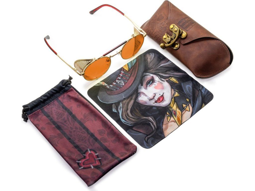 Každé brýle jsou dodávány s kompletní sběratelskou sadou včetně prémiového pouzdra z umělé kůže s uzávěrem inspirovaným trezorem, mikrovláknového pouzdra s motivy Borderlands a čisticího hadříku s portrétem Moxxi.