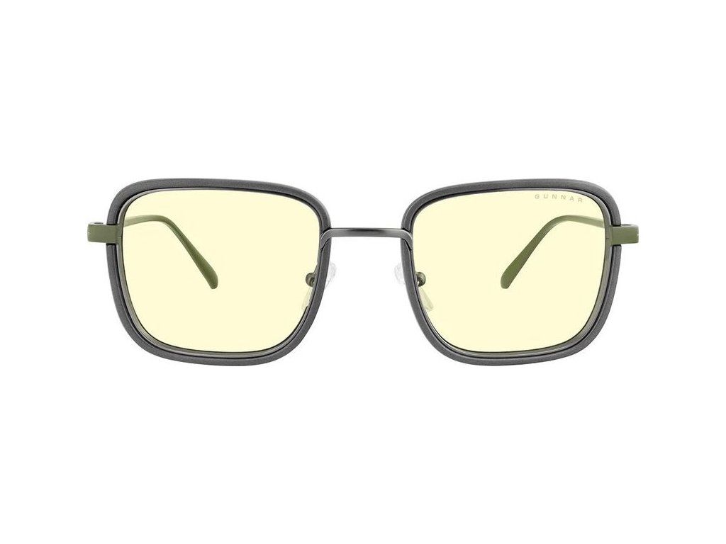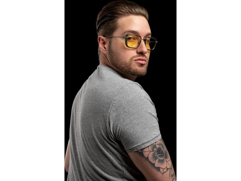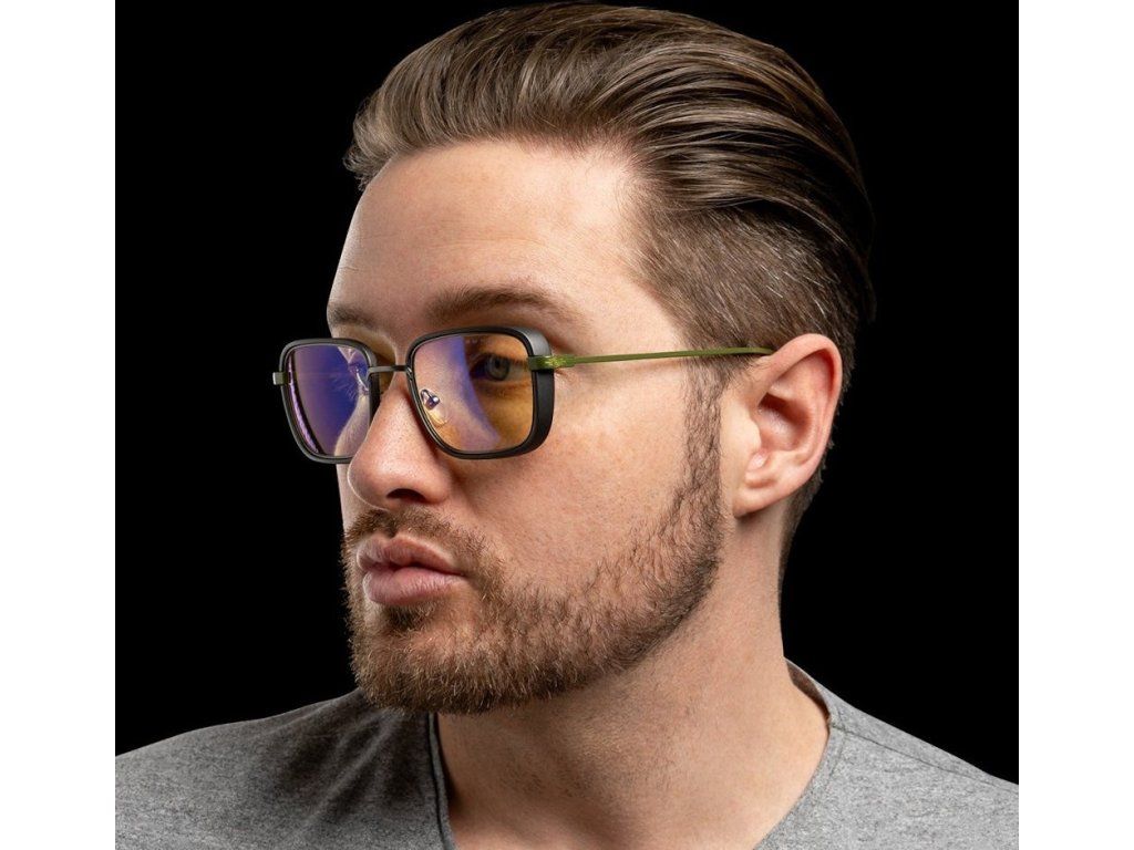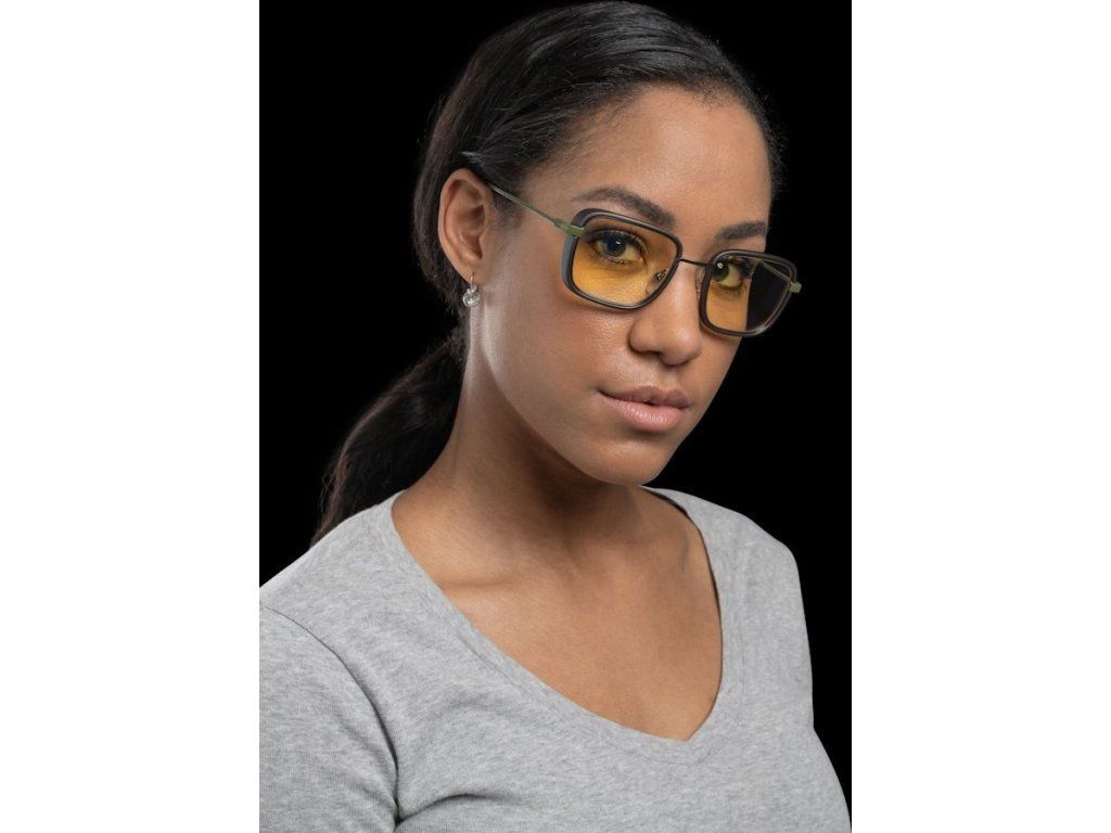 Kancelářské brýle s jantarovými skly a jedinečným designem, určené zejména pro dlouhou práci či hraní na počítači. Tento retro-futuristický styl hranatých obrouček má přední část z nerezové oceli a nylonu zakončenou olivovými kovovými nožičkami. Brýle blokují 65 % modrého světla a 100 % ultrafialového záření, díky čemu minimalizují zatížení očí a celkovou únavu. O maximální komfort se postarají ergonomicky tvarovaná sedla, zatímco pevná konstrukce rámu a boční štíty zajistí správnou optickou stabilitu.