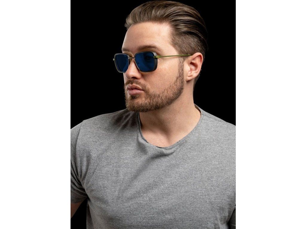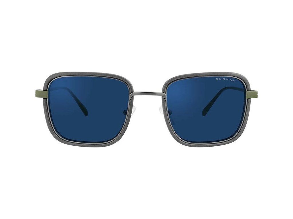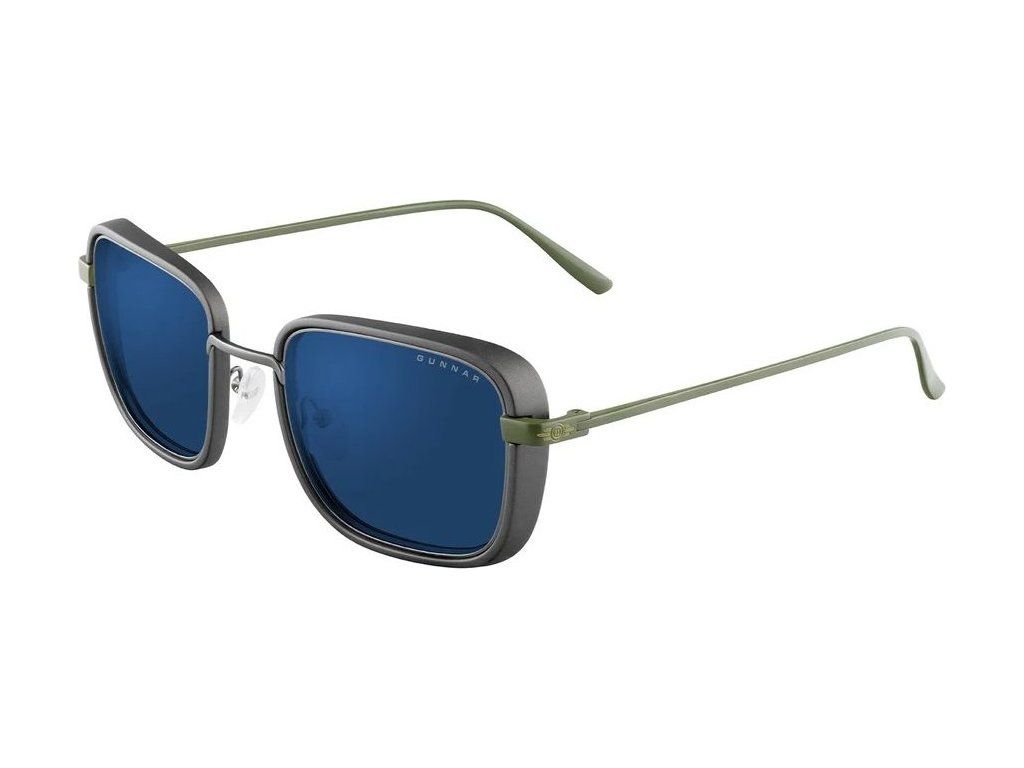 Sluneční brýle s tmavými skly a jedinečným designem, určené zejména pro venkovní nošení či práci na počítači ve velmi světlém prostředí. Tento retro-futuristický styl hranatých obrouček má přední část z nerezové oceli a nylonu zakončenou olivovými kovovými nožičkami. Brýle blokují 90 % modrého světla a 100 % ultrafialového záření, díky čemu minimalizují zatížení očí a celkovou únavu. O maximální komfort se postarají ergonomicky tvarovaná sedla, zatímco pevná konstrukce rámu a boční štíty zajistí správnou optickou stabilitu.