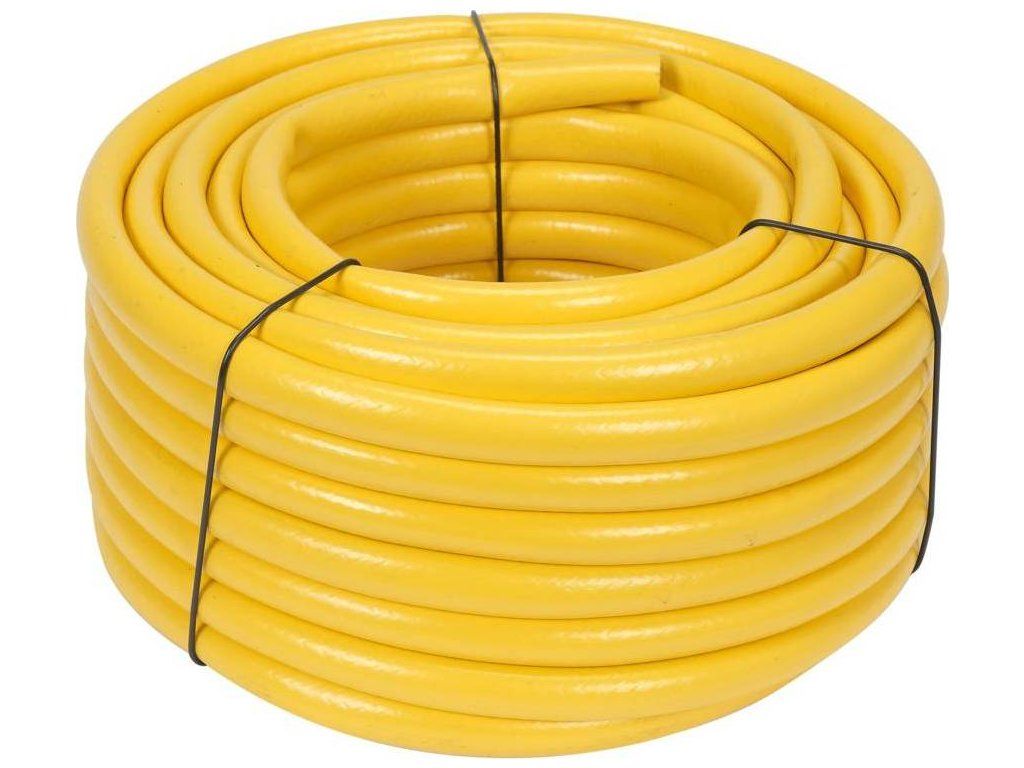 Třívrstvá zahradní hadice z pružného plastu s výztuhou příze. Odolná vůči procesům stárnutí, UV záření a usazování nečistot. Hadice je pružná i při nízkých teplotách.