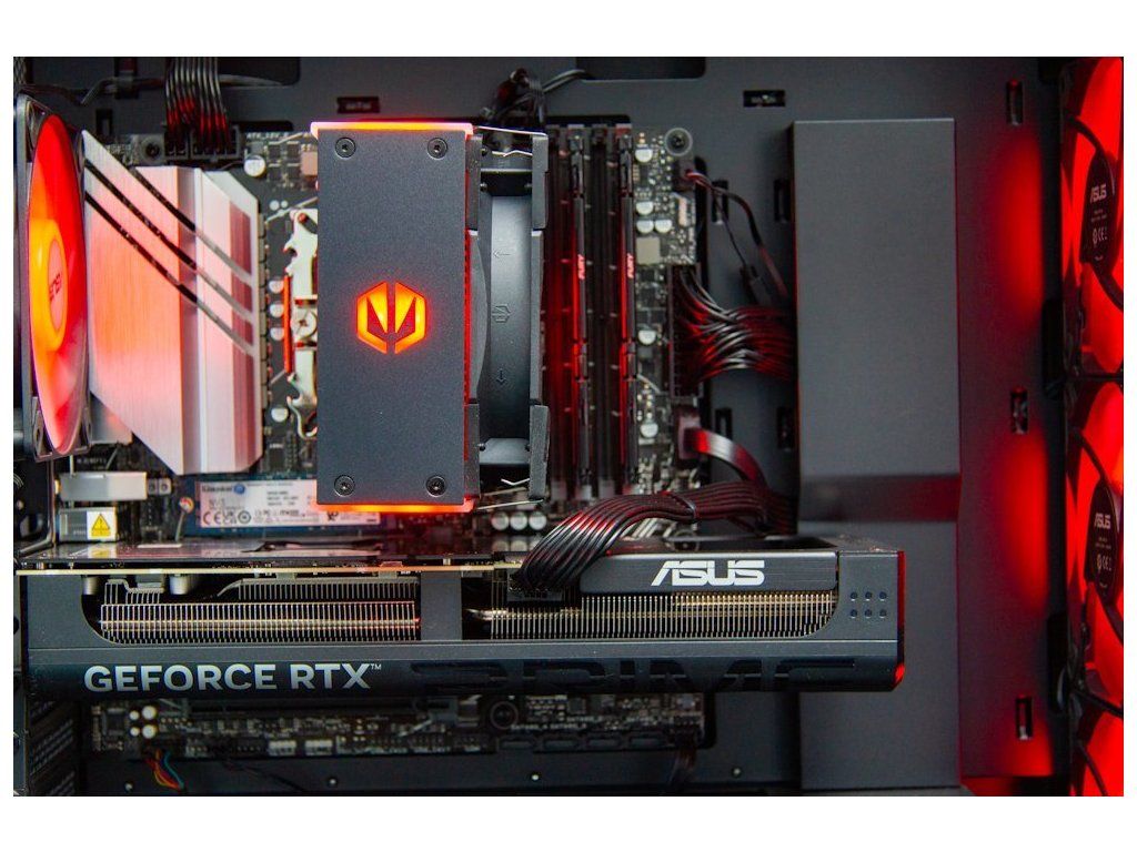 Celá sestava je umístěna v kompaktní skříni ASUS A21 PLUS BLACK s minimalistickým designem a čtyřmi tichými ARGB ventilátory. Počítač disponuje 32GB DDR5 pamětí a rychlým 1TB NVMe SSD diskem. Základní deska má integrovanou WiFi 6 s podporou Bluetooth 5.2 a spolehlivou 2,5Gbit LAN pro připojení optického internetu. Prověřený chladič Endorfy Fera 5 ARGB zajišťuje tichý a výkonný chod procesoru.