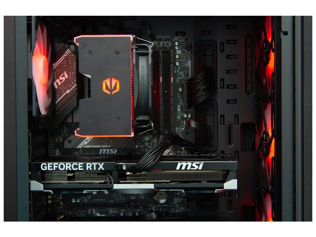 Sestava disponuje 32GB rychlou DDR5 pamětí na frekvenci 6000MHz a bleskurychlým 2TB PCIe 4.0 NVMe SSD diskem, který pojme celou tvou herní knihovnu. Nechybí ani 2,5Gbit LAN pro nejrychlejší kabelové připojení, integrovaná WiFi 7 s Bluetooth pro bezdrátovou konektivitu všech tvých zařízení, 20Gbit USB-C konektor na zadním panelu a jeden 10Gbit USB-C port snadno dostupný na čelní straně skříně.