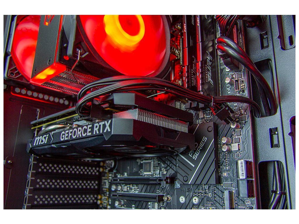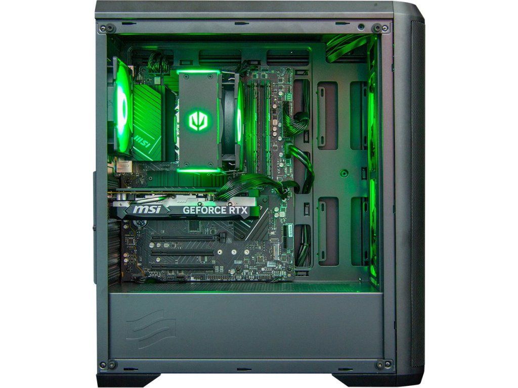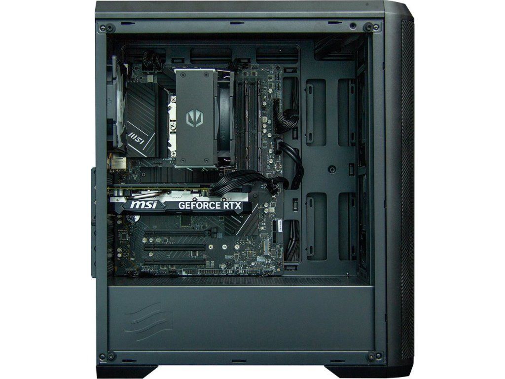 Sestava disponuje 32GB DDR4 pamětí na frekvenci 3200MHz pro bezproblémový multitasking a rychlým 1TB PCIe 4.0 NVMe SSD pro bleskové načítání her. K dispozici máš moderní konektivitu včetně 10Gbit USB-C, integrované WiFi 6E s Bluetooth a 2,5Gbit LAN pro nejrychlejší připojení k internetu.