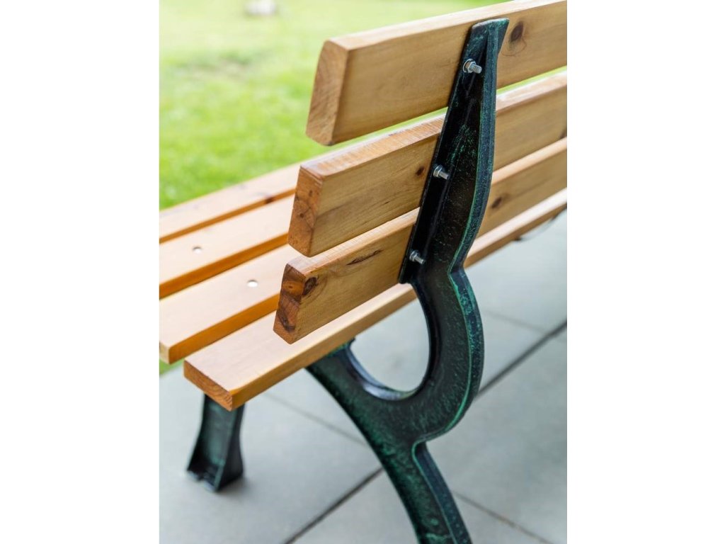 Zahradní lavička Gallen je velice masivní konstrukce vyrobena z litinových nohou a masivních dřevěných latí v přírodní barvě. Lavička je osazena 7 masivními prkny o velikosti 180 x 8 x 2,3 cm. Lavička je balena ve 2 kartonech (odděleně litinové části + dřevěné latě).