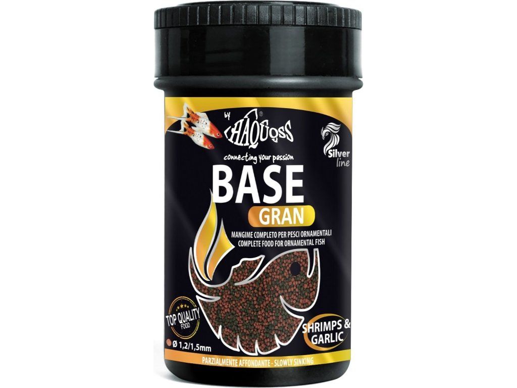 Haquoss Basegran je kompletní vločkové krmivo pro náročné okrasné akvarijní ryby.