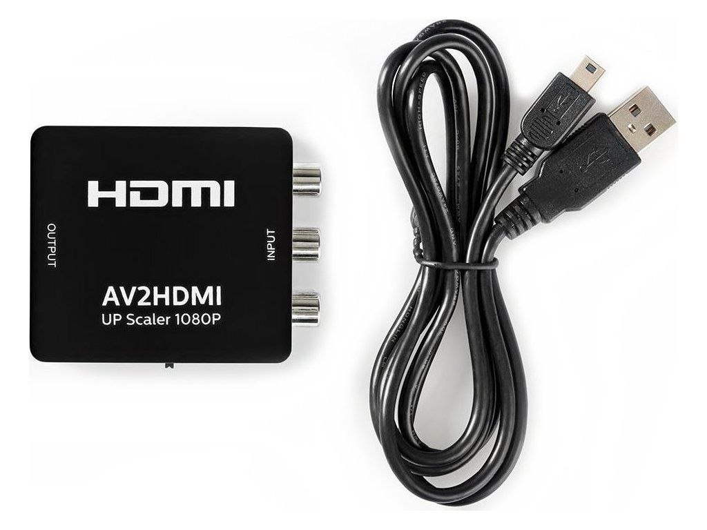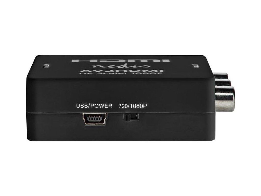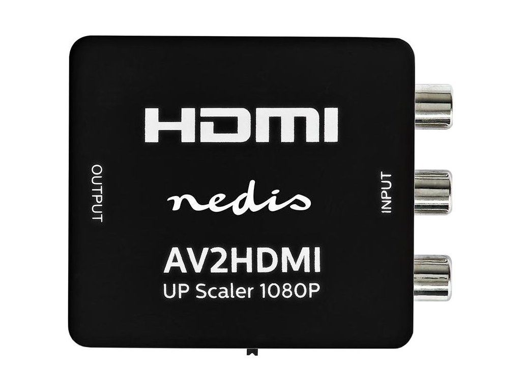 Nedis 3x RCA na HDMITento adaptér převádí kompozitní video signál na digitální rozhraní HDMI. Adaptér nabízí také přenos zvuku z dvojice RCA konektorů. Podporuje Full HD rozlišení 1920 x 1080 obrazových bodů. Součástí balení je napájecí USB kabel.