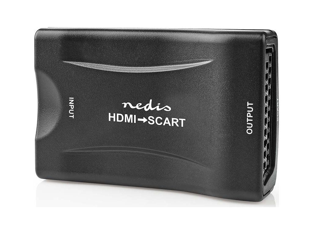 Nedis VCON3461BKTento převodník převádí digitální signál HDMI na analogový videosignál SCART. Má k dispozici přepínač obrazové normy mezi PAL a NTSC. Synchronizuje videosignál a audiosignál, aby docházelo k minimálním prodlevám. Vhodné pro připojení zařízení s výstupem HDMI k televizoru se vstupem SCART. Napájení je realizováno pomocí přiloženého USB kabelu.