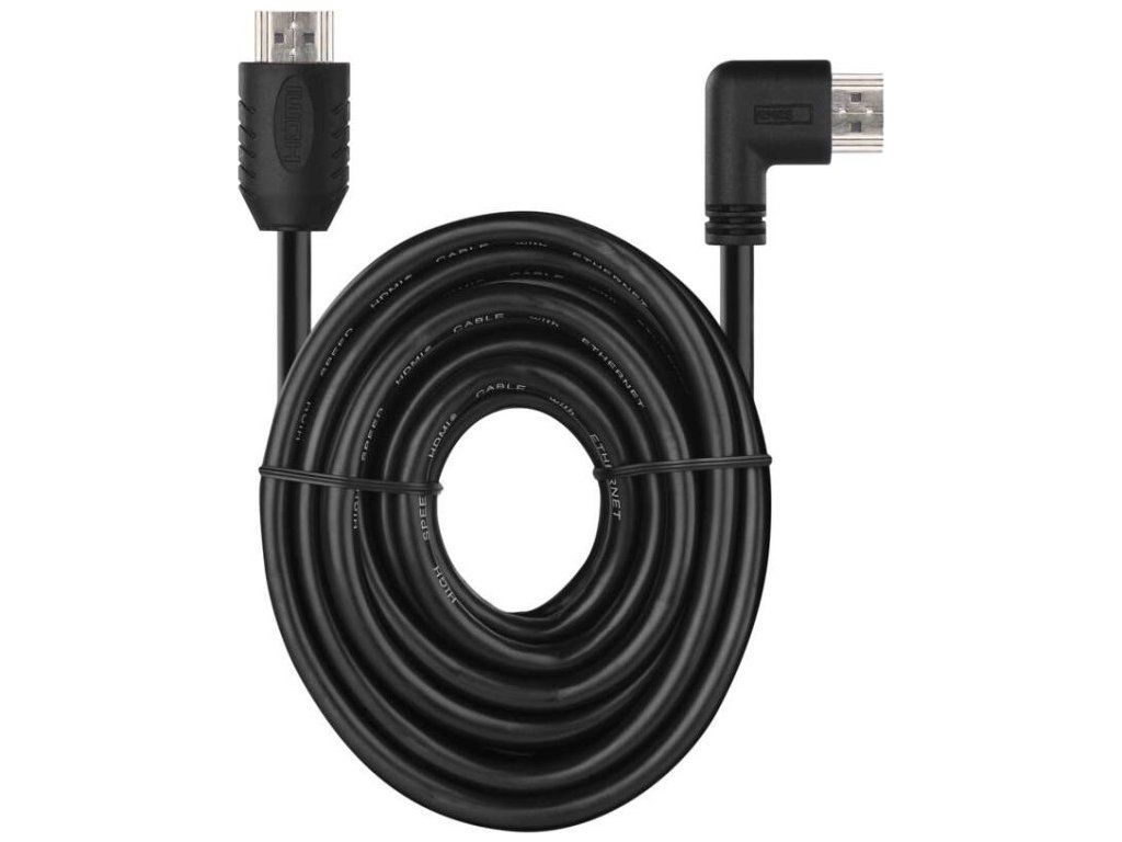 HDMI kabel s UHD rozlišením (4K, 2160p). Kabel má úhlový konektor (90°). Vysoká přenosová rychlost až 18 Gbit/s pro kompatibilitu s vysoce kvalitním zařízením.