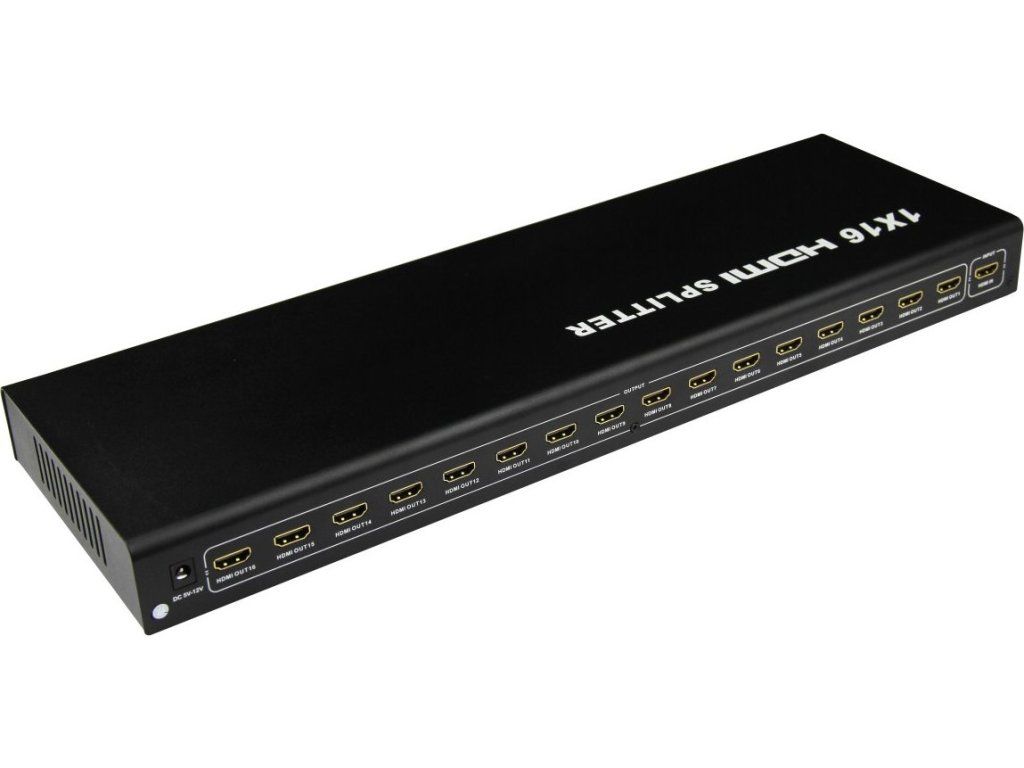 HDMI Video Splitter 1 => 16 s externím napájecím zdrojem, HDMI 1.4a kompatibilní max. rozlišení 1080i a 1080p.