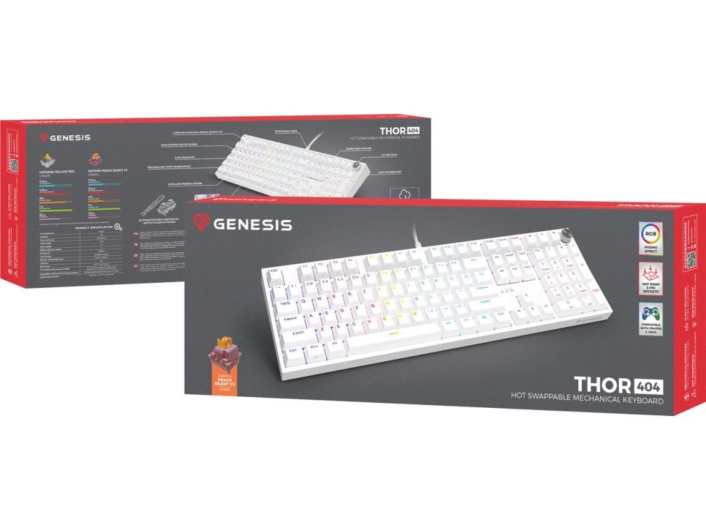 Herní mechanická klávesnice Genesis THOR 404/RGB/Outemu Peach Silent/Drátové USB-A/US layout/Bílá