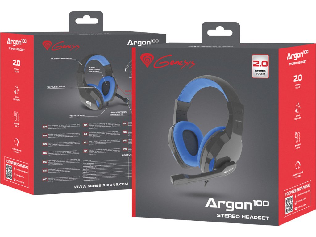 Genesis Argon 100 je náhlavní souprava s 2.0 stereo zvukem určená nejen pro hráče. Lehké, ale odolné materiály, dlouhý opletený kabel, vysoká zvuková kvalita, mikrofon a čtyři dostupné barvy, to jsou hlavní výhody Argon 100. Headset je vybaven velkými 40 mm měniči, které poskytují akustický tlak na úrovni 108 dB a stereo zvukový systém, který zajišťuje správnou hloubku ostrosti a realitu reprodukovaného zvuku. Sluchátka budou perfektní pro každý typ zvuku, ať už se jedná o hru nebo film.