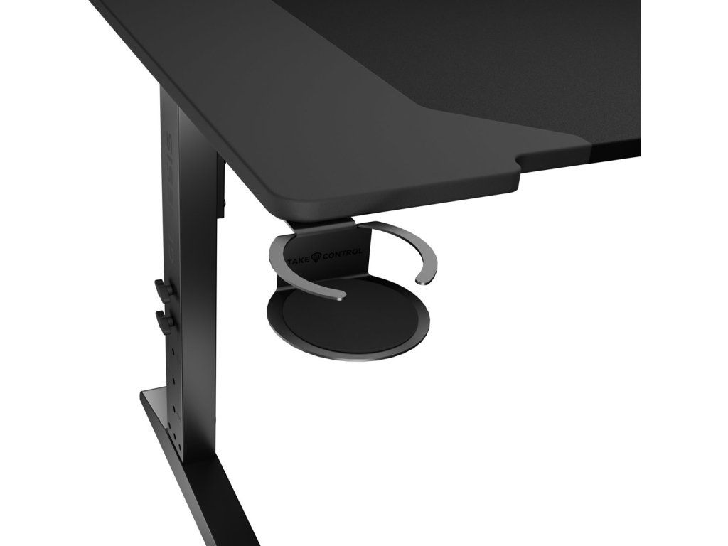 - Je vybaven skládacími držáky na šálky a sluchátka, které lze bez demontáže skrýt pod stůl.