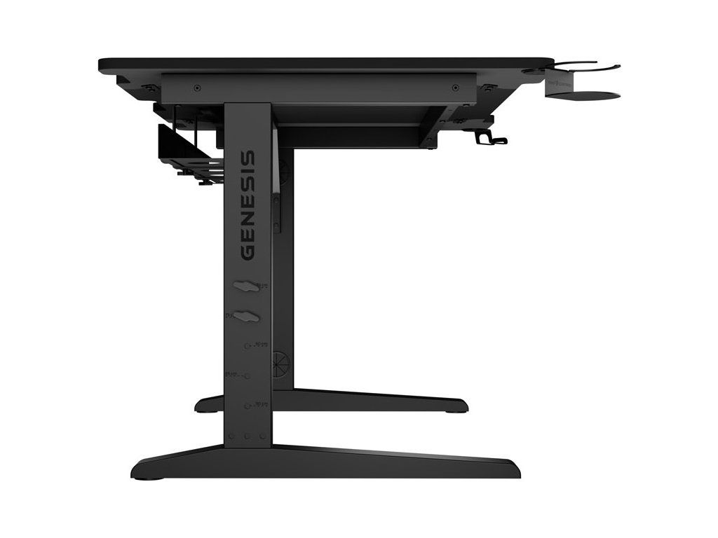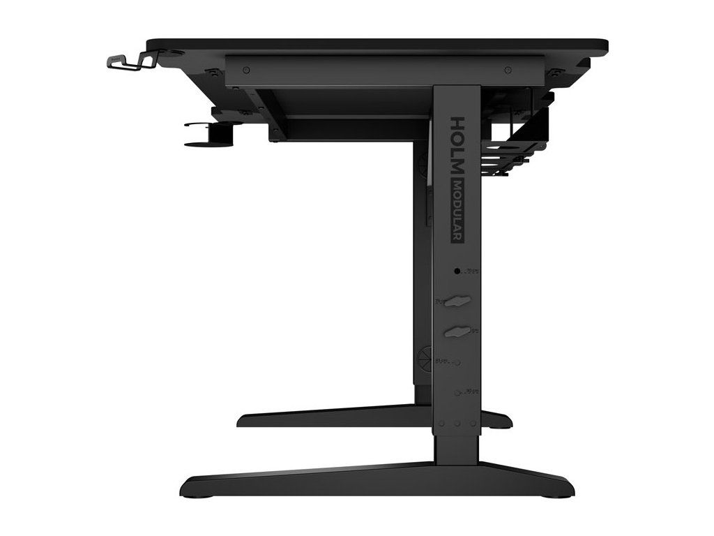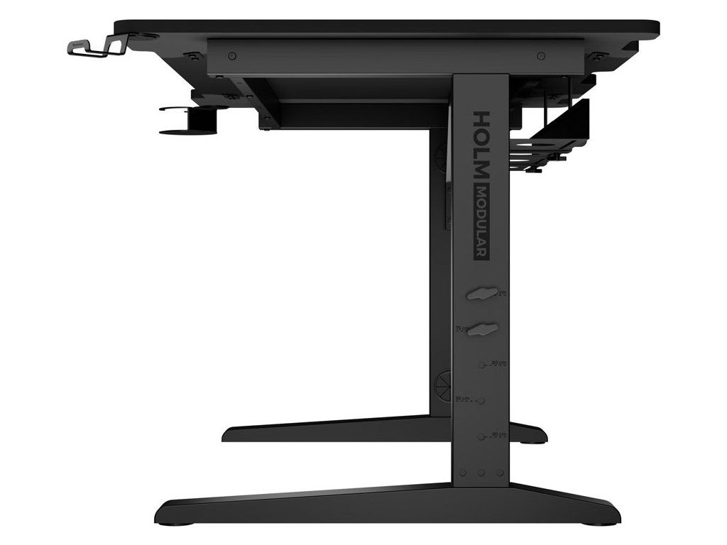 Nemusíte se obávat ani jeho výšky. Již ve fázi montáže si můžete vybrat z 5 úrovní, čímž určíte polohu stolové desky v rozmezí 70 až 90 cm. Můžete si ji tak snadno přizpůsobit své výšce, díky čemuž je stůl GENESIS Holm Modular plně ergonomický. Nastavitelná je také speciální police na kabely. Můžete ji prodloužit v rozmezí 50 až 95 cm, a přizpůsobit ji tak rozměrům celé stolové desky. Díky její hloubce se do ní snadno vejdou i velké přepěťové lišty.