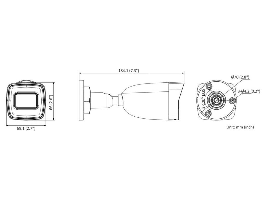 Objektiv: f = 2,8 mm, pevný, úhel záběru horizontálně 113°, vertikálně 62°, diagonálně 134°