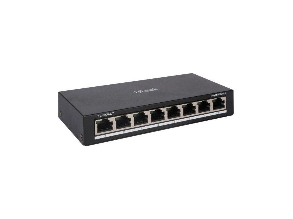 HiLook NS-0508Gigabitový 8portový switch bez správy (unmanaged). Nabízí kapacitu 16 Gbps, snadnou instalaci (Plug-and-Play) a odolné kovové tělo. Je vhodný pro domácnosti, školy, ubytovny, kanceláře, malé monitorovací zařízení a další jednoduchá síťová prostředí.