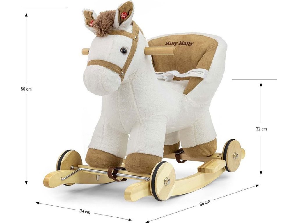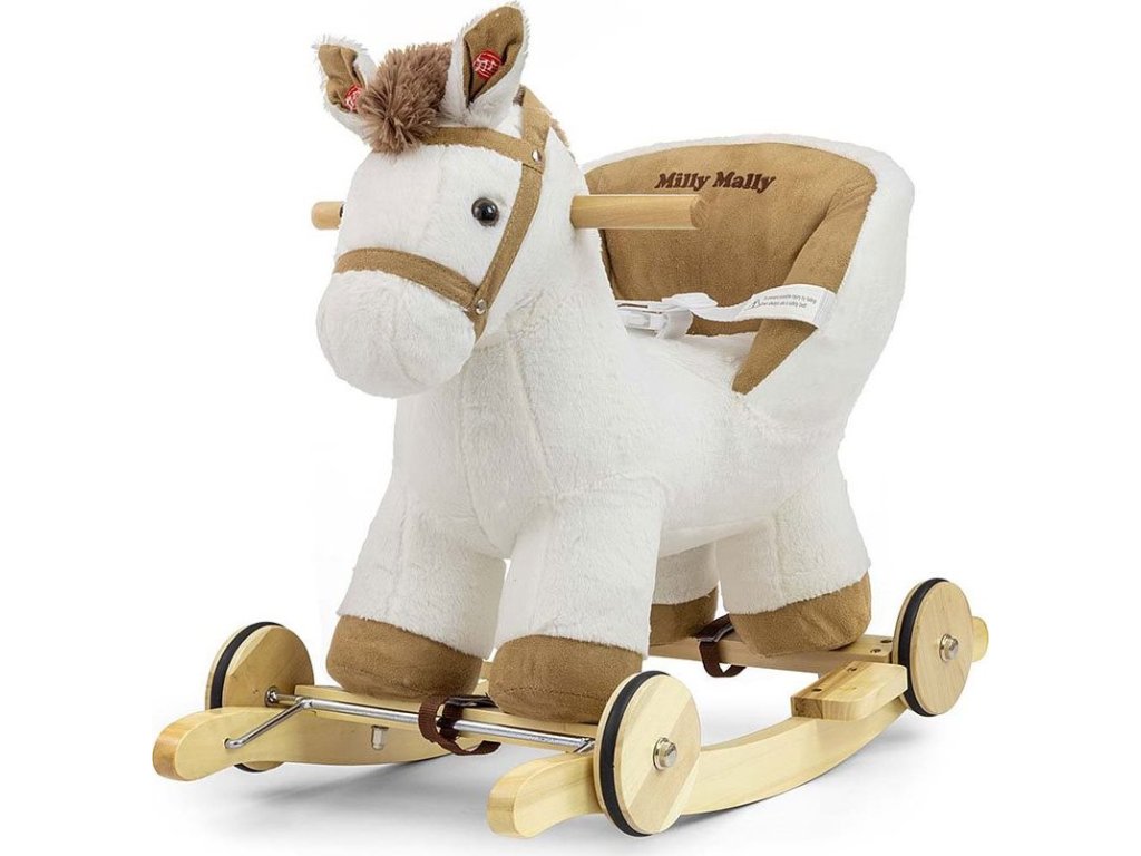 Houpací koník s melodií a kolečky Milly Mally Polly bílý