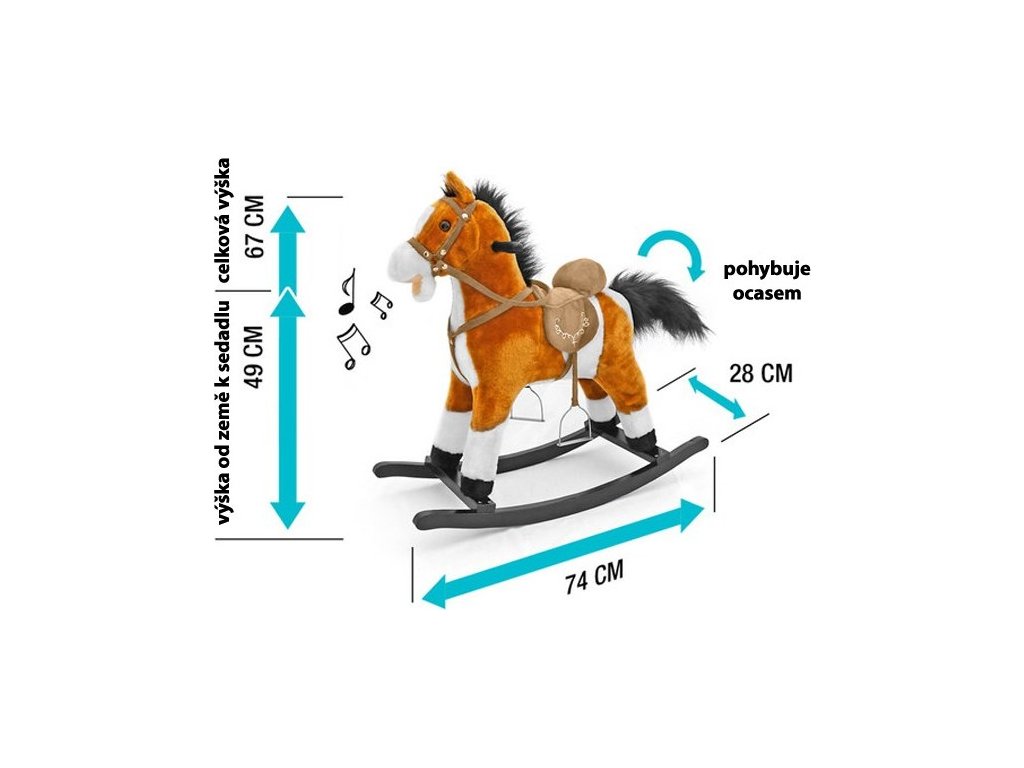 Rozměry bez houpací lišty: 60x28x55 cm, výška k sedlu: 49 cm.