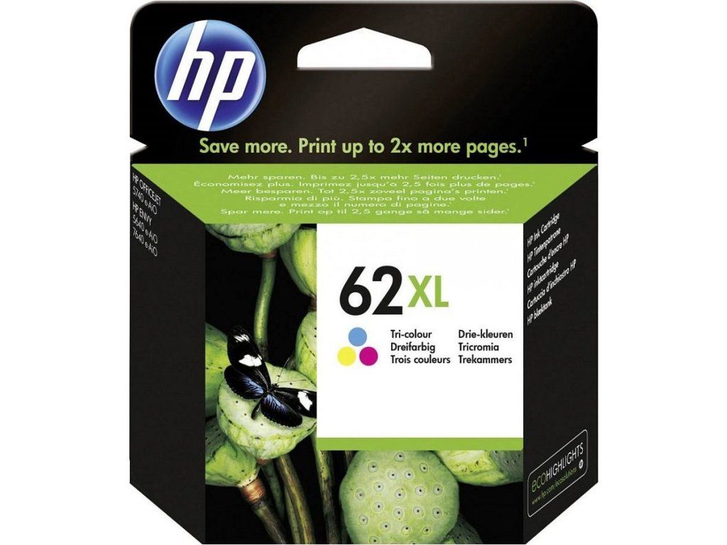 HP (62XL) Tříbarevná originální inkoustová kazeta, C2P07AE originál