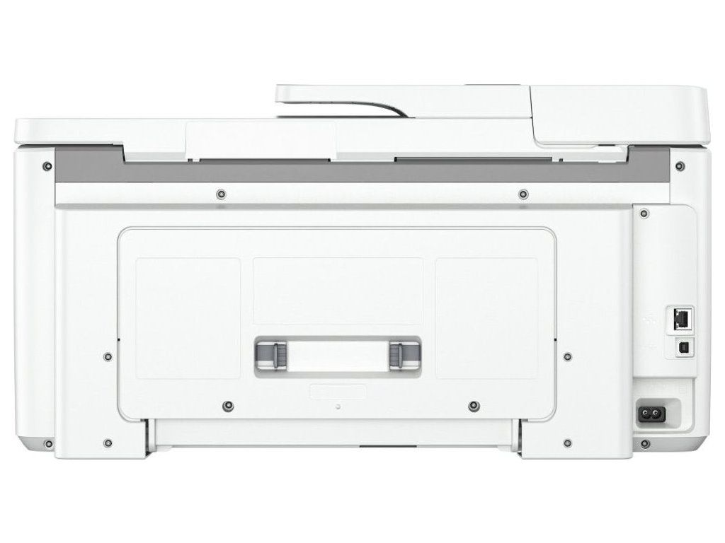 Obsah balení: Široko formátová tiskárna HP OfficeJet Pro 9720e All-in-One; Černá startovací inkoustová kazeta HP 937; Azurová startovací inkoustová kazeta HP 937; Purpurová startovací inkoustová kazeta HP 937; Žlutá startovací inkoustová kazeta HP 937; Regulační leták; Leták s upozorněním na inkoust; Napájecí kabel; Instalační leták; Referenční příručka