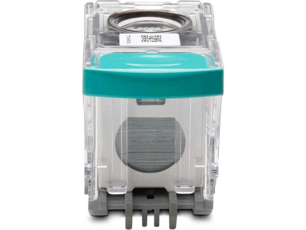 Zabraňte přerušení pracovních úloh pomocí doplňku kazet HP se svorkami. S 5 000 sponkami v náplňové kazetě a zprávami, které indikují, kdy sešívačce dochází zásobník, nemusíte se obávat, že by se uprostřed tisku došly spony.