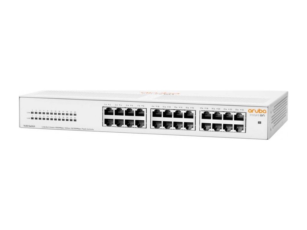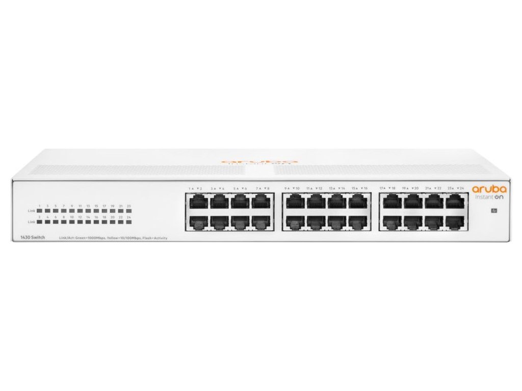 HPE Aruba Instant On 1430 24GNeřízený (unmanaged) přepínač z řady 1430 nabízí 24x 10/100/1000 Mbps RJ-45 portů, Plug-and-Play instalaci, plně automatizované funkce a nulovou průběžnou údržbu. Díky snadné obsluze bez složité konfigurace sítě je ideální volbou pro malé podniky a domácí kanceláře, které hledají jednoduché, spolehlivé a cenově přijatelné řešení. Přepínací kapacita switche je 48 Gbps a rychlost směrování činí 35,71 Mpps. Díky prioritizaci na základě DSCP nebo dle standardu 802.1p přepínač zajišťuje plynulý audio a video přenos ve vaší kancelářské síti. Lze ho položit jen tak na stůl, namontovat ho na nebo pod něj, na zeď nebo do 19" rackového rozvaděče. Bezventilátorové provedení zaručuje naprosto tichý chod.