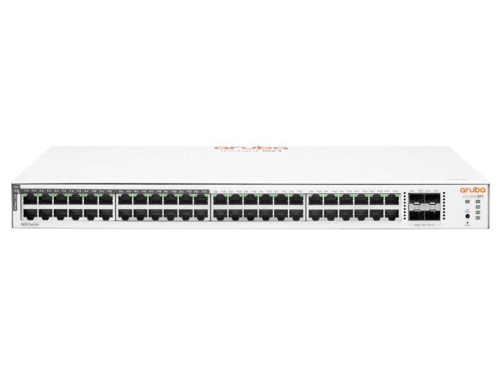 HPE Aruba Instant On 1830 48G 4SFP 370W Switch (24x PoE Class4 + 24x RJ45 10/100/1000).