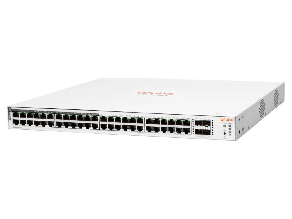 HPE Aruba Instant On 1830 48G PoE 4SFPSpravovatelný PoE+ switch nabízející 24× 10/100/1000 Mbps RJ-45 portů s PoE+ (802.3af/at), 24× 10/100/1000 Mbps RJ-45 portů a 4× 1 GbE SFP sloty. Přepínací kapacita switche je 104 Gbps a rychlost směrování činí 77,37 Mpps. Mezi hlavní přednosti patří snadná tvorba oddělených VLAN, QoS nebo IGMP Snooping. Řada Aruba 1830 nabízí uživatelsky přívětivé webové rozhraní či mobilní aplikaci pro snadnou konfiguraci a správu.