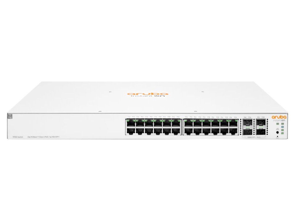 HPE Aruba Instant On 1930 48G PoE 4SFP/SFP+Spravovatelný PoE+ switch nabízející 24× 10/100/1000 Mbps RJ-45 portů s PoE+ (802.3af/at) a 4× 1/10 GbE SFP+ porty. Přepínací kapacita switche je 128 Gbps a rychlost směrování činí 95,23 Mpps. Mezi hlavní přednosti patří snadná tvorba oddělených VLAN, QoS nebo IGMP Snooping. Malým organizacím, které si chtějí svou infrastrukturu řídit samy, nabízí řada Aruba 1930 uživatelsky přívětivé webové rozhraní či mobilní aplikaci pro snadnou konfiguraci a správu.