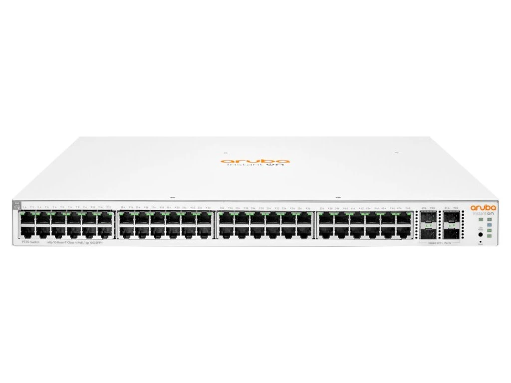 HPE Aruba Instant On 1930 48G PoE 4SFP/SFP+Spravovatelný PoE+ switch nabízející 48× 10/100/1000 Mbps RJ-45 portů s PoE+ (802.3af/at) a 4× 1/10 GbE SFP+ porty. Přepínací kapacita switche je 176 Gbps a rychlost směrování činí 130,95 Mpps. Mezi hlavní přednosti patří snadná tvorba oddělených VLAN, QoS nebo IGMP Snooping. Malým organizacím, které si chtějí svou infrastrukturu řídit samy, nabízí řada Aruba 1930 uživatelsky přívětivé webové rozhraní či mobilní aplikaci pro snadnou konfiguraci a správu.