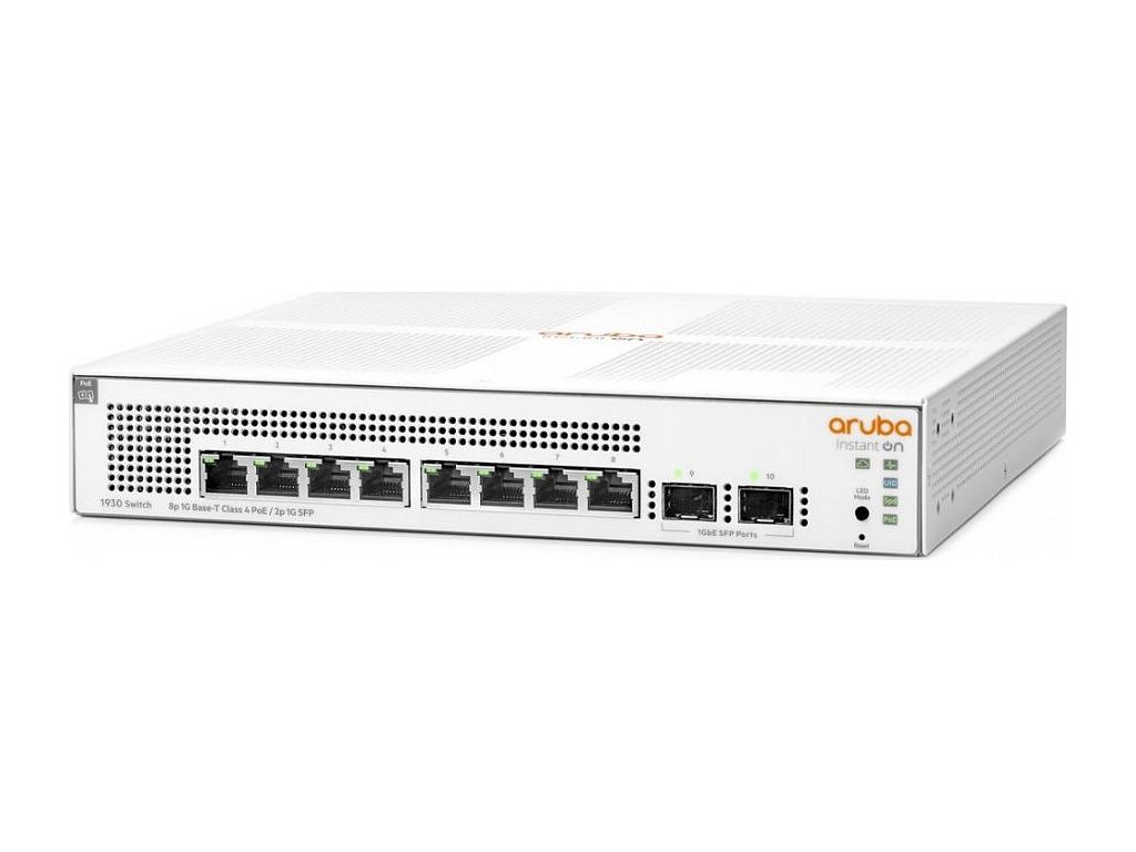 HPE Aruba Instant On 1930 8G PoE 2SFPSpravovatelný switch nabízející 8x 10/100/1000 Mbps RJ-45 portů s PoE+ (802.3af/at) a 2x 1 GbE SFP porty. Přepínací kapacita je 20 Gbps a rychlost směrování činí 14,88 Mpps. Mezi hlavní přednosti patří pokročilé funkce jako jsou VLAN, QoS, IGMP Snooping, agregace linek, protokoly Spanning Tree a řízení přístupu IEEE 802.1X. Switch lze položit jen tak na stůl, namontovat ho na nebo pod něj, na zeď nebo do 19" rackového rozvaděče. Provedení bez ventilátoru zaručuje naprosto tichý chod. Řada Aruba 1930 nabízí uživatelsky přívětivé webové rozhraní či mobilní aplikaci pro snadnou konfiguraci a správu.