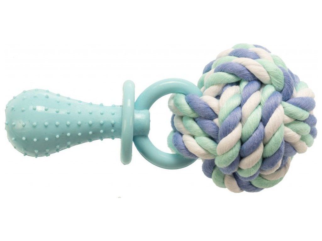 Skvělá kombinace dvou typů materiálů ihned zaujme každého pejska. Bavlněný provaz poslouží k čištění zubů, TPG plast zase dlouho odolá psím zubům. Ideální pomůcka při přezubování anebo jako odolná hračka pro všední chvíle. Vhodné pro psy všech plemen a velikostí.
