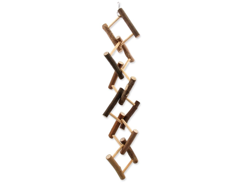 Závěsná dřevěná hračka pro drobné exotické ptactvo.