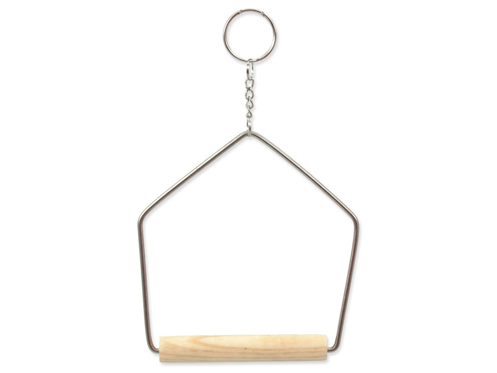 Dřevěná houpačka s kovovým závěsem k umístění do ptačích klecí.