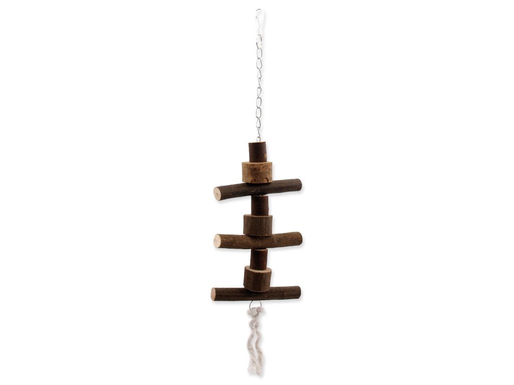 Dřevěná hračka na řetízku k zavěšení do klece. Vhodná pro drobné a středně velké exotické ptactvo.