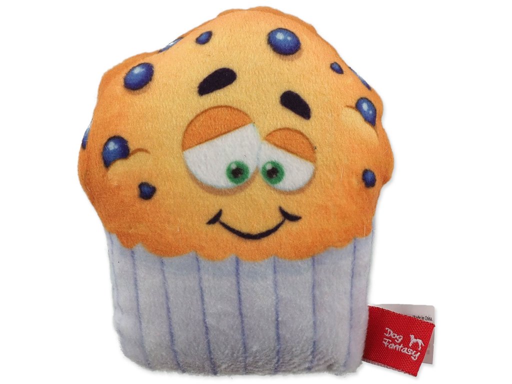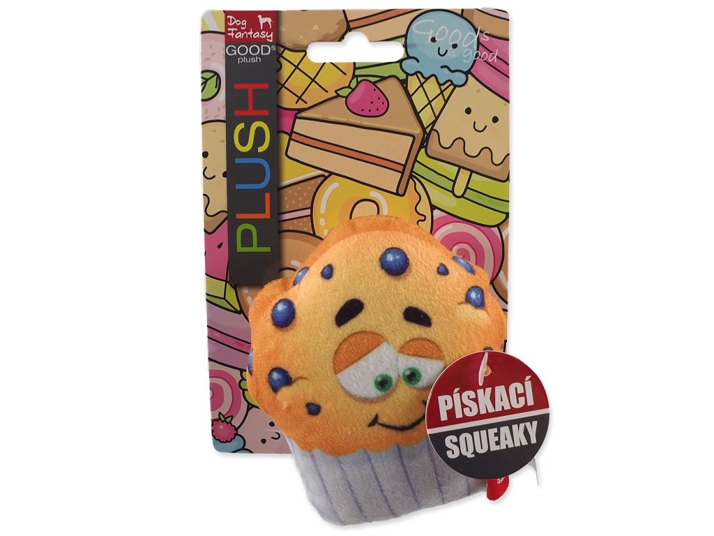Roztomilá plyšová hračka ve tvaru muffinu. Při stlačení hračka píská.