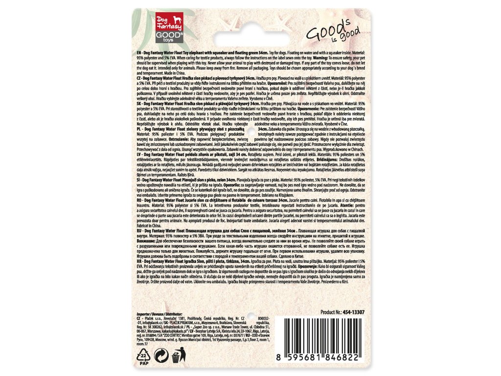 Hračka Dog Fantasy Water Float slon pískací a plovoucí tyrkysová 34cm