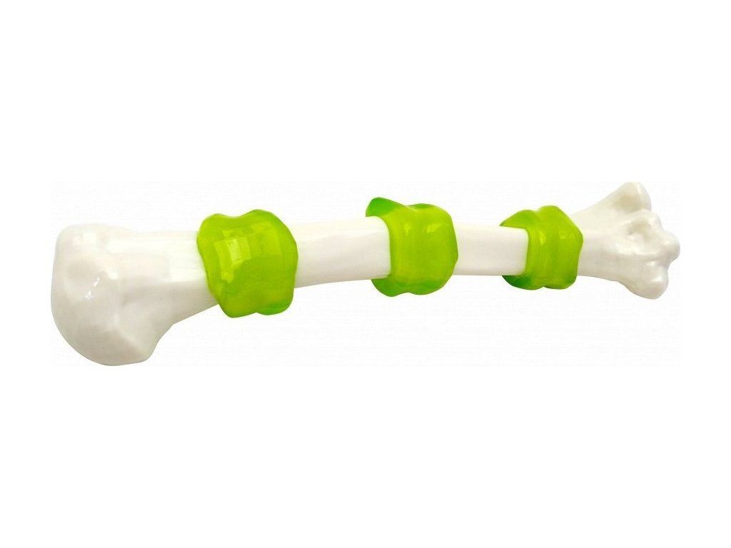 Interaktivní hračka ve tvaru kosti imituje slaninovou vůni a příchuť. Kost obsahuje dva druhy materiálu – tvrdý nylonový plast a měkký ochucený, což stimuluje psa ke hře a kousání kosti, a nepřestane vašeho mazlíčka jen tak bavit. Pes si navíc při hraní masíruje i dásně a posiluje svoji čelist. Kost Gimborn bude pro vašeho psa ideální hračkou, kterou zažene nudu.