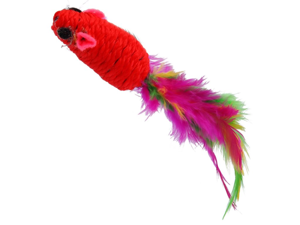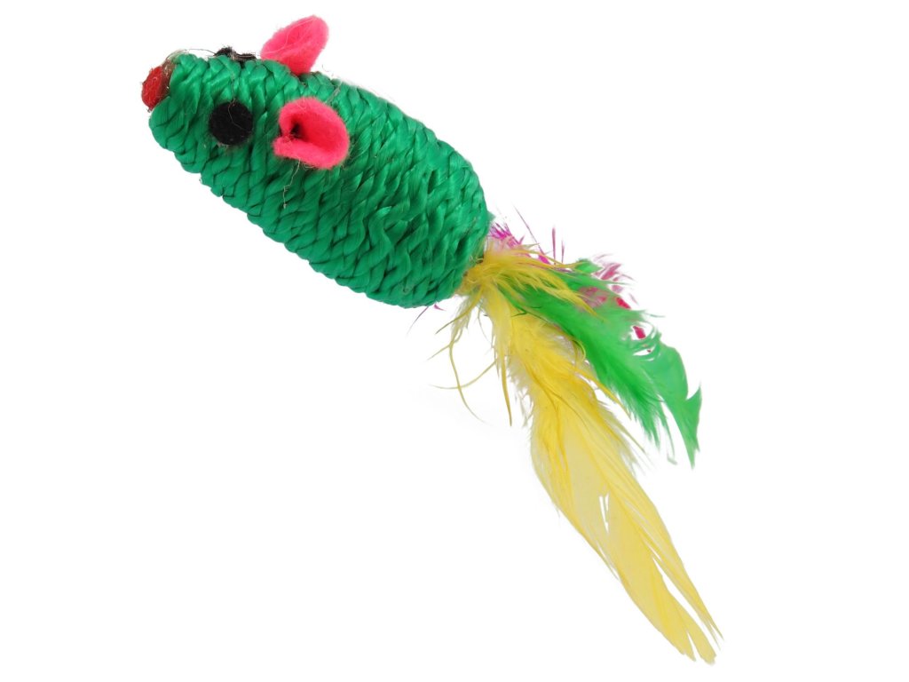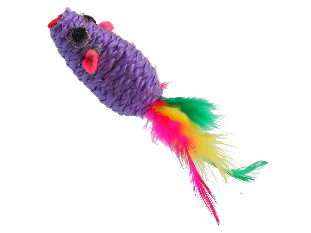 Bavlněná myška s pírky. Hračka, které Vaše kočka neodolá. Pírka lákají k aktivní hře.