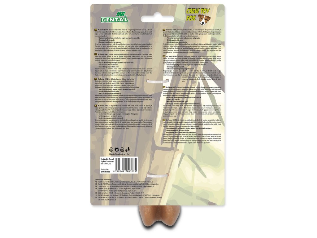 Hračky Mr. Dental Bambones jsou zábavou pro všechny velikosti a plemena psů, která vyhledávají zábavu v podobě žvýkání. Díky dostupnosti v několika velikostech (S, M, L, S/M, L/XL), tvarech (kladivo, klacek, růžek, ypsilon a kost) a vůních (kuře, hovězí a slanina) si na své přijde opravdu každý pejsek.