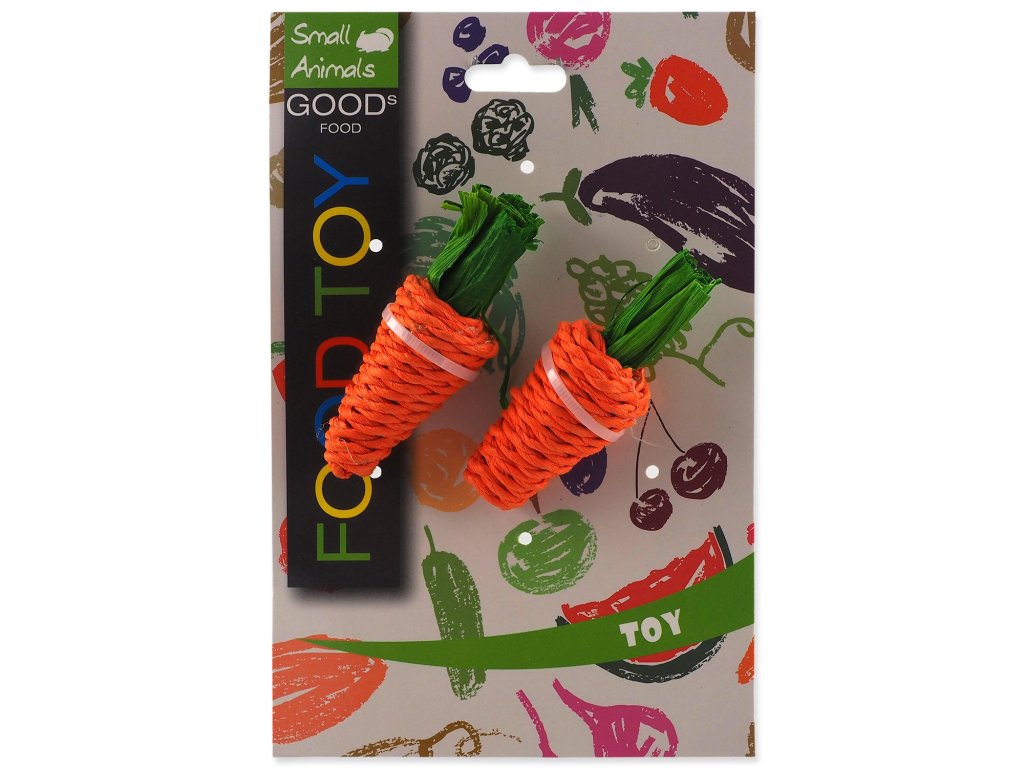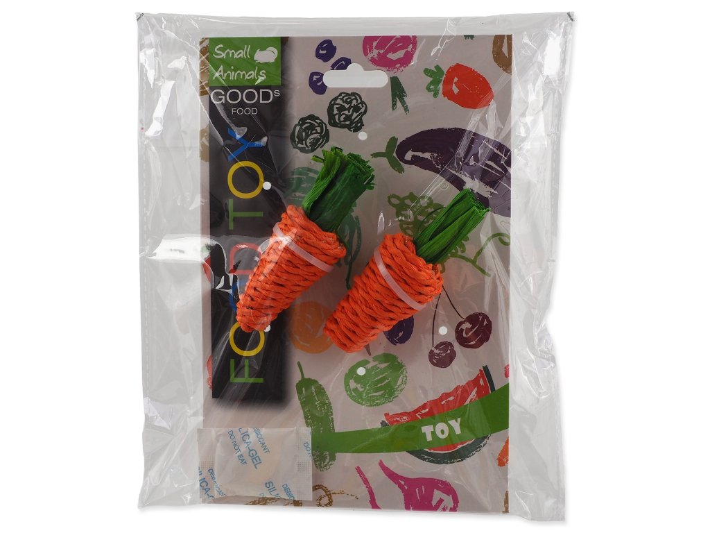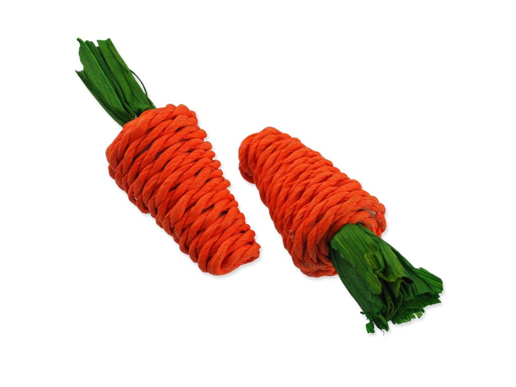 Hračka pletené sisalové mrkvičky vhodné pro králíky a drobné savce. Ideální na broušení zubů a drápků. Vyrobeno z papíru a kukuřičných listů. Obsahuje potravinářská barviva.