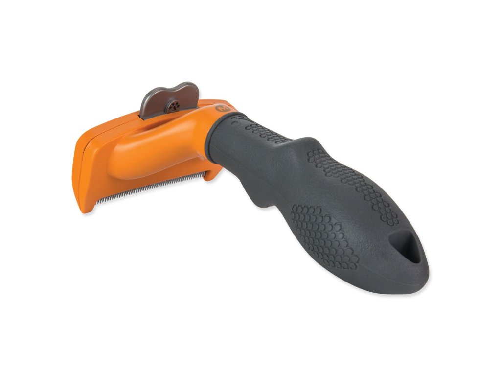 - Vyčesávací hrana z nerezové oceli proniká hluboko do srsti zvířete, kde šetrně a lehce odstraňuje uvolněné chlupy z podsady, aniž by poranila kůži nebo poškodila srst.